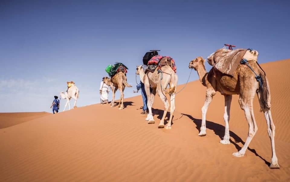 • Continue to Merzouga, where you will ride camels into the Sahara Desert and spend the night in a desert camp.