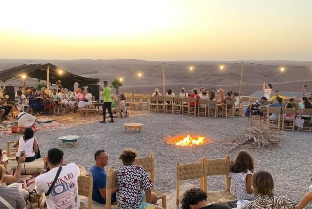 A full Moroccan meal with tagine, salads, desserts, and tea — served in a  desert camp with live entertainment.